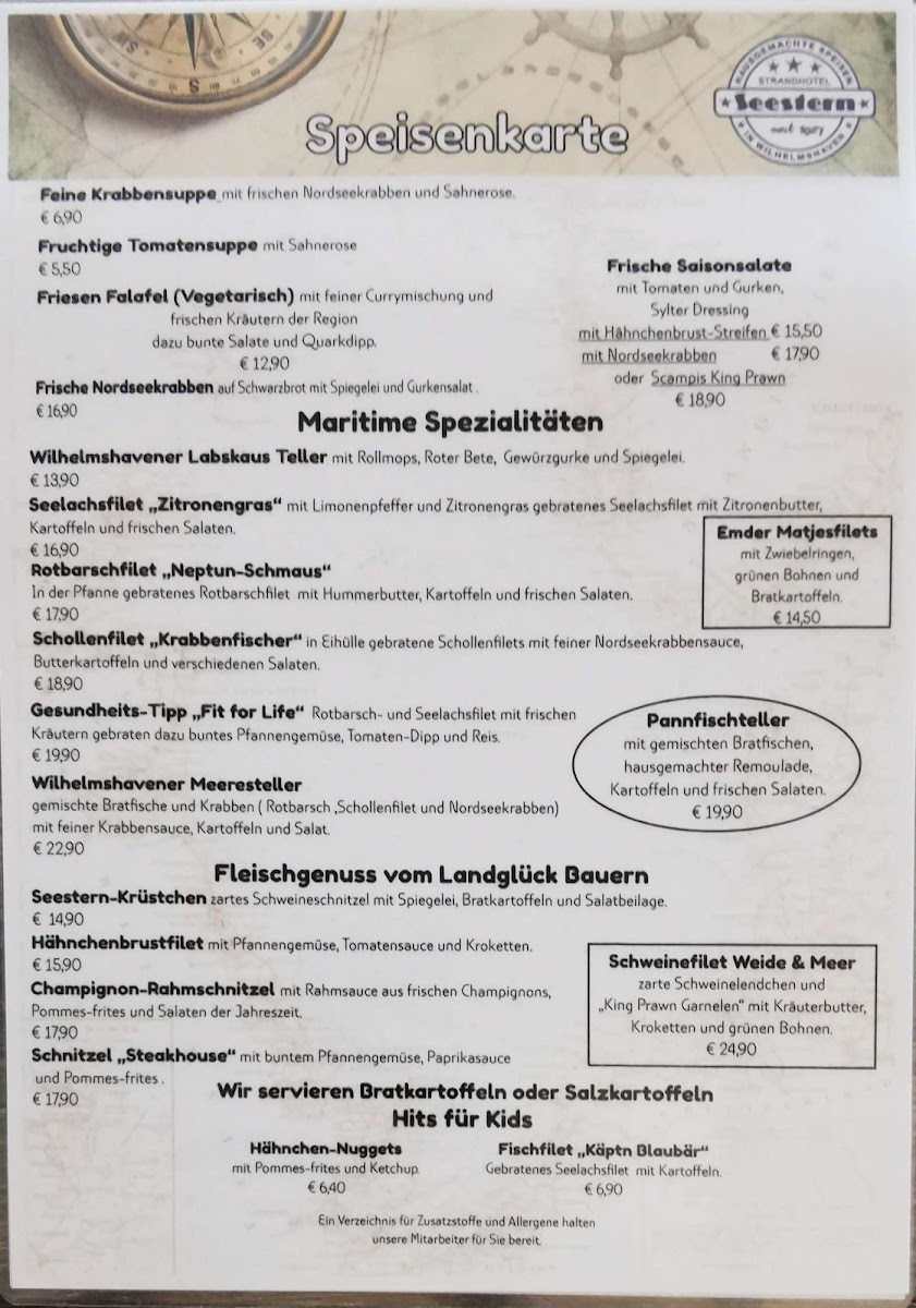 Welcome to Restaurant & Café Seestern, a hidden gem nestled along the picturesque Südstrand in Wilhelmshaven, Germany. This cozy establishment invites diners to indulge in its thoughtfully curated menu, featuring a delightful blend of local seafood specialties and hearty classics. Guests rave about the crispy Schnitzel, beautifully accompanied by fried potatoes and a fresh salad, capturing the essence of comfort food with a modern twist. Don’t miss their famed Waffles served alongside rich coffee for a perfect afternoon treat.